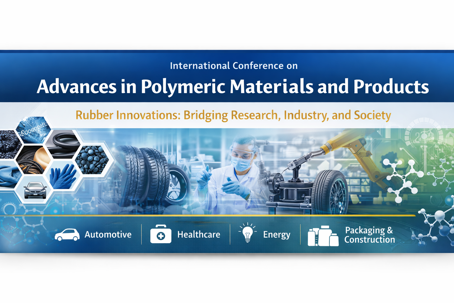 The International Conference on Advances in Polymeric Materials and Products, themed “Rubber Innovations: Bridging Research, Industry, and Society,” aims to provide a vibrant international platform for researchers, academicians, industrial professionals, entrepreneurs, and policymakers to exchange knowledge, showcase recent advances, and discuss future directions in polymeric materials and rubber-based technologies. The conference seeks to promote innovation-driven research, strengthen academia–industry interactions, and encourage the development of sustainable, high-performance materials and products that address emerging societal and industrial needs. The conference will cover a broad range of topics related to the science, technology, processing, characterization, and application of polymeric materials and products, with a special focus on rubber innovations. It will explore fundamental research as well as translational and industrial aspects of natural and synthetic rubbers, elastomers, polymer blends, composites, nanocomposites, smart and functional materials, sustainable and bio-based polymers, recycling and circular economy approaches, advanced manufacturing, product development, testing, quality assurance, and end-use applications. The conference will also highlight the role of polymeric materials in sectors such as automotive, healthcare, energy, packaging, electronics, construction, and consumer products, while emphasizing solutions that connect scientific advancement with industrial relevance and societal benefit.